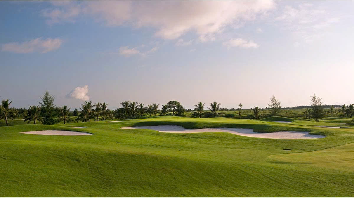 Cách bố trí lý tưởng dừa thành hàng dọc theo fairway trên rough tạo ra một bầu không khí tuyệt vời của khu du lịch ven biển. Những bẫy cát được tạo hình mang đầy tính nghệ thuật cùng với các dòng nước tự nhiên uốn mình theo dáng cong của khu du resort mang lại một sự thanh bình, yên ả mà người chơi gôn nào cũng dễ đem lòng yêu mến.